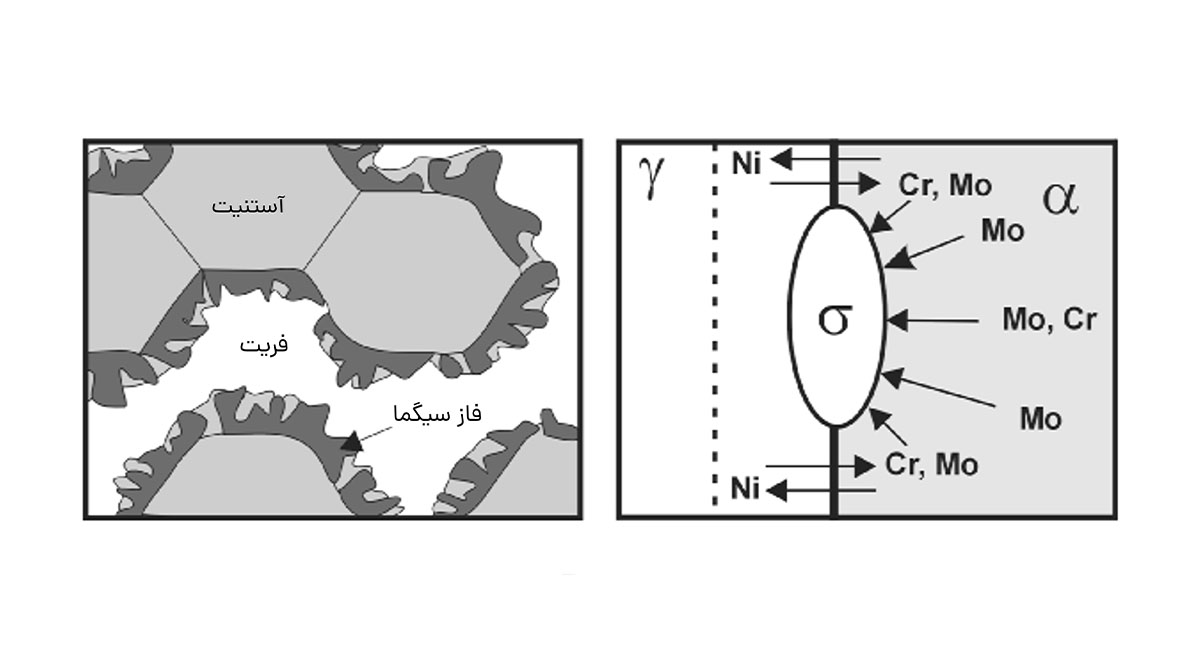 - تفاوت در ساختارهای آستنیتی و فریتی: فاز سیگما عمدتاً از تجزیهی فاز فریتی تشکیل میشود؛ بنابراین گریدهای داپلکس و فریتی بیشتر در معرض تشکیل این فاز هستند.